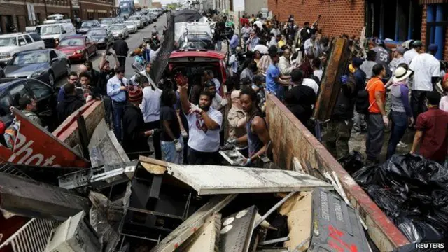 این اولین بار از سال ۱۹۶۸ است که بالتیمور شاهد حضور گارد ملی برای متوقف کردن ناآرامی هاست. در آن سال پس از ترور مارتین لوتر کینگ رهبر جنبش آزادی های مدنی سیاهپوستان آمریکا، محلات بالتیمور به آتش کشیده شد.
