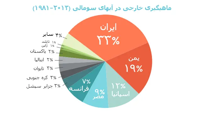 بنا بر این گزارش که آمار و ارقام ماهیگیری در سومالی بین سالهای ۱۹۸۱ تا ۲۰۱۳ را بررسی کرده، ماهیگیران ایرانی سهمی معادل یک سوم از کل صید غیرقانونی ماهی را در این آبها داشتهاند.