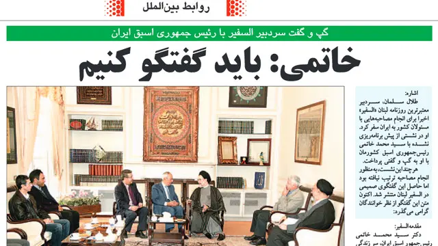 روزنامه اطلاعات بخشهایی از گفتوگوی سردبیر روزنامه لبنانی "السفیر" با محمد خاتمی را در شماره دیروز خود (یکشنبه، ۱۵ آذر) با تیتر درشت "خاتمی: باید گفتگو کنیم" چاپ کرد.