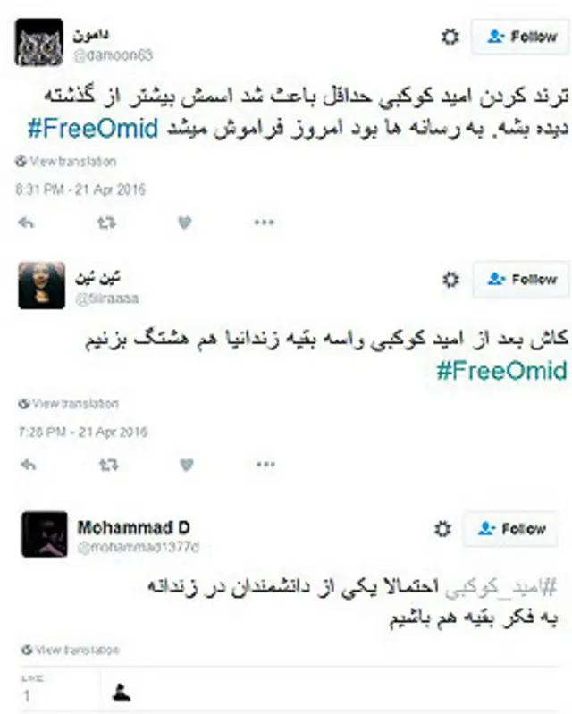 روز گذشته گروه پرشماری از کاربران اینترنت در توییتر با توییتهای خود با هشتگ FreeOmid# و #امیدکوکبی خواستار آزادی او شدند. تعداد زیاد توییتها باعث شد این هشتگ به ترند اول توییتر تبدیل شود.