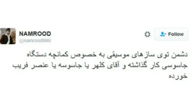 در آن مقطع هنوز دلیلی به طور رسمی اعلام نشده بود. کاربری به نام نامرود نوشت: "دشمن توی سازهای موسیقی بخصوص کمانچه، دستگاه جاسوسی کار گذاشته و آقای کلهر یا جاسوسه یا عنصر فریب خورده."