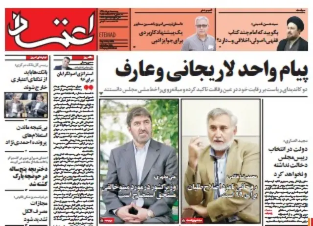 روزنامه اعتماد نوشته که دو کاندیدای ریاست بر رقابت خود در عین رفاقت تاکید کرده و میانهروی را خط مشی مجلس دانستند. در همین حال در ابتدای گزارش گروه سیاسی این روزنامه از جمله آمده که علی لاریجانی هنوز هم پدیدهای است که میتواند طیفهای سیاسی را در آن واحد نسبت به خود ناامید و امیدوار کند. مثل همین نشست خبری دیروزش. وقتی از لیست امید اعلام برائت کرد، قند در دل اصولگرایان آب میشد و وقتی راجع به مساله مینو خالقی و مذاکرات هستهای سخن میگفت، لبخند بر لبان اصلاحطلبان و هواداران دولت نقش میبست.