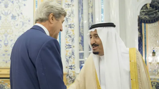 وزیر خارجه آمریکا که برای گفت و گو در مورد جنگ داخلی یمن به عربستان سفر کرده گفته است: "ارسال موشک و تسلیحات پیشرفته نظامی از ایران به یمن تهدید بالقوهای است که دامنه آن فراتر از یمن میرود... این تنها تهدیدی برای عربستان و منطقه نیست... این تهدید متوجه آمریکا هم میشود و نباید ادامه یابد."