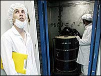 4 آوریل: ایران داشتن تاسیسات اتمی مخفی را تکذیب و اصرار کرد که بکارگیری آزمایشی اورانیوم غنی شده در اصفهان مغایر با تعهداتش در پروتکل الحاقی نیست. 9 آوریل: غلامرضا آقازاده، رییس سازمان انرژی اتمی ایران اعلام کرد که جمهوری اسلامی "داوطلبانه" تولید سانترفیوژ را متوقف می کند. 21 مه: ایران گزارشی با بیش از هزار صفحه را درباره فعالیتهای اتمی خود تحویل آژانس داد. اول ژوئن: آژانس ادعا کرد نشانه های تازه ای از اورانیوم غنی شده را در ایران یافته که فراتر از سطح لازم برای تولید غیر نظامی انرژی هسته ای است. 10 ژوئن: دیپلماتها گفتند ایران در بازار سیاه اتمی به دنبال "دهها هزار" قطعه برای برنامه هسته ای خود بوده است. 12 ژوئن: ایران اعلام کرد که تسلیم فشارهای بین المللی نخواهد شد و از دنیا خواست که این کشور را عضو "باشگاه هسته ای" بداند.