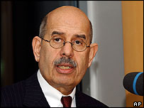 21 فوریه: محمد برادعی، مدیر آژانس بین المللی انرژی اتمی به ایران سفر کرد تا ادعای تهران را مبنی بر این که برنامه اتمی اش صلح آمیز است، تایید کند. از آن زمان تا ماه مه، بازرسان چندین بازرسی در ایران انجام دادند. مه: ایران تایید کرد تاسیساتی را در نطنز و اراک می سازد ولی تاکید کرد که اینها همانند نیروگاه بوشهر صرفا برای تولید انرژی هسته ای و کاربرد غیر نظامی آن است. 16 ژوئن: آقای برادعی اظهار کرد که بازرسی ها نشان داده که "ایران برخی از مواد و فعالیتهای اتمی خود را گزارش نداده است" و خواستار همکاری تهران شد. با این حال این گزارش اعلام نکرد که ایران مفاد معاهده منع تکثیر تسلیحات اتمی رانقض کرده است. در همین حال، وزرای خارجه اتحادیه اروپا از ایران خواستند اجازه دهد بازرسی های سختگیرانه تری اعمال شود. 19 ژوئن: آری فلیشر، سخنگوی کاخ سفید، توسل به "گزینه نظامی" در برخورد با ایران را منتفی ندانست. 19 ژوئن: آژانس از ایران خواست پروتکل الحاقی معاهده منع تکثیر تسلیحات هسته ای را امضا کند و به بازرسان اجازه دهد به تاسیسات هسته ای جمهوری اسلامی دسترسی نامحدود و سرزده داشته باشند.
