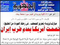 مطالب مرتبط حمايت جنبش عدم تعهد از برنامه هستهای ايران؛ صوری يا واقعی؟31 مه، 2006 | ايران سردرگمی کشورهای عرب در رابطه با ايران01 مه، 2006 | ايران سفر مقامات ايران به کشورهای عربی: نگرانی اعراب از ايران چيست؟11 آوريل، 2006 | ايران هشدار حسنی مبارک به آمريکا نسبت به حمله به ايران01 مارس، 2006 | ايران رايس خواستار جبهه متحد بين المللی در قبال ايران شد21 فوريه، 2006 | ايران درخواست رايس از دولتهای عرب برای منزوی کردن ايران 17 فوريه، 2006 | ايران 'بمب اتمی ايران به رقابت تسليحاتی در خاورميانه دامن میزند'25 اکتبر، 2005 | ايران تغيير ترکيب شورای حکام آژانس اتمی01 اکتبر، 2005 | ايران | |||||||||||||||||||||||||||||||||||||||||||||||||||||||||||||||||||||||||||||||||||||||||||||||||||||||||||||||||||||||||||||||||||