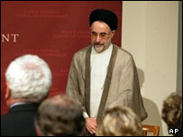 محمد خاتمی، رییس جمهور سابق ایران ضمن محکوم کردن اسامه بن لادن، رهبر القاعده از ایالات متحده آمریکا به خاطر استانداردهای دوگانه اش انتقاد کرده است. آقای خاتمی در سخنان سی دقیقه ای خود که روز یکشنبه در دانشگاه هاروارد و تحت تدابیر شدید امنیتی برگزار شد با ستایش از حزب الله لبنان از نقش این گروه در مقاومت در برابر اسرائیل دفاع کرده است. در حالی که گروهی در خارج از سالن سخنرانی در اعتراض به حضور و سخنرانی آقای خاتمی در دانشگاه تجمع کرده بودند، در داخل سالن سخنان رئيس جمهور پيشين ايران چندين بار با تحسین حضار روبرو شد. محمد خاتمی بلندمرتبه ترين شخصيت جمهوری اسلامی است که از زمان پيروزی انقلاب اسلامی سال 1979 به پايتخت آمريکا سفر کرده است. سفر وی با مخالفت هایی هم در درون ایران و هم در خارج روبرو شده است. وی برای شرکت در يک رشته ديدار و سخنرانی در راستای ايده گفتگوی تمدن ها به آمریکا سفر کرده است و پیش از سخنرانی در هاروارد در کليسای جامع واشنگتن و در مجمع عمومی مسلمانان آمريکا نیز حضور پیدا کرده بود. جورج بوش، رییس جمهوری آمریکا ، چند روز پیش در مصاحبه با روزنامه وال استریت ژورنال گفته بود که شخصا دستور صدور رواديد سفر به آمريکا را برای محمد خاتمی، رئيس جمهوری پيشين ايران صادر کرده، چون علاقه داشته است که بداند او چه حرفهايی برای گفتن دارد. رییس جمهوری پیشین ایران در هاروارد با تمجید ازمفهوم دموکراسی گفته است که سیاستمداران آمریکایی از زمان جنگ جهانی دوم شیفته ایده سلطه بر جهان بوده اند. آقای خاتمی در سخنان خود با بیان این نکته که وی از اولین سران جهان بود که حملات 11 سپتامبر را به عنوان یک اقدام وحشیانه محکوم کرده در پاسخ به یک سئوال از حضار در مورد بن لادن گفته است که وی با رهبر القاعده دو مشکل دارد. به گفته آقای خاتمی، مشکل اول این است اسامه بن لادن مرتکب جنایاتی شده است و دوم این که او این جنایات را به نام اسلام، دینی که بر پایه صلح و عدالت است انجام داده است. آقای خاتمی در سخنان خود تاکید کرده است که نمی توان گروه حزب الله لبنان را با گروه های تروریستی مقاسیه کرد و گفته است که حزب الله لبنان برای تمامیت ارضی کشورش مبارزه می کند در حالی که گروه های تروریستی تنها خواهان کشتار هستند. آقای خاتمی در پاسخ به سئوال یک دانشجو در مورد کمک های مالی دولت وی به گروه های تروریستی گفته است که وی هیچگاه چنین اقدامی انجام نداده است. وی همچنین ادعای برخی کشورهای غربی در مورد کمک های مالی ایران به حزب الله لبنان و سایر گروه ها را رد کرده است. آقای خاتمی در سخنان خود همچنین از آمریکا خواسته است تا به سایر کشورها اجازه دهد تا مدل دموکراسی خود را شخصا انتخاب کنند.