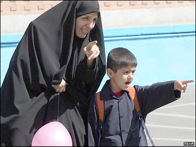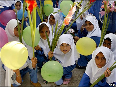 محمود احمدی نژاد رئیس جمهور ایران در مدرسه پاسداران مهرآباد جنوبی زنگ یک مدرسه دخترانه را به صدا در آورد