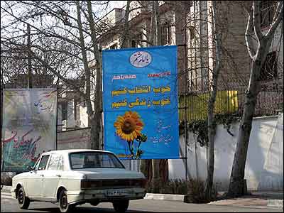تبلیغات انتخابات مجلس ایران که از دو روز پیش آغاز شده محدود به بیلبوردهای بزرگ تبلیغاتی است که در برخی مناطق پرتردد شهر نصب شده است. این بیلبوردها عمدتا از سوی جناح های سیاسی نصب شده که مردم را به شرکت در انتخابات تشویق می کنند. معدود نامزدهای انتخاباتی در سطح شهر تهران که نزدیک به 870 نامزد در این شهر برای 30 کرسی رقابت می کنند، ستادهای تبلیغاتی راه انداخته اند. شهرداری تهران تابلوهایی را برای تبلیغات نامزدها در نظر گرفته اما اکثر این تابلوها خالی است.