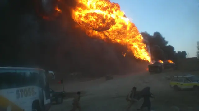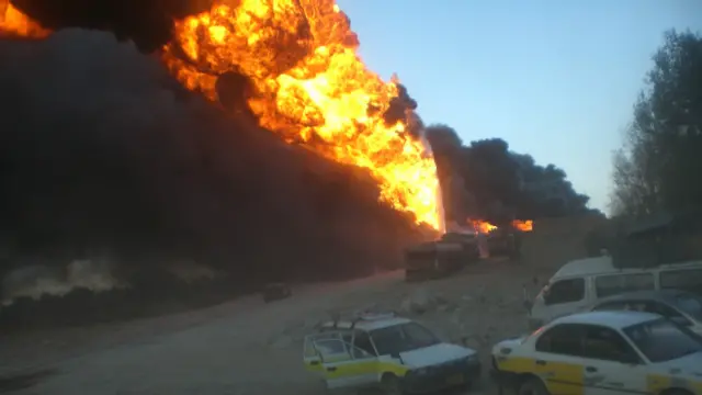محمد جواد بهروز واحدی یکی از مخاطبان بی بی سی فارسی این عکس ها را از آتش گرفتن تانکرهای حمل نفت در مسیر کابل قندهار برای ما فرستاده است.