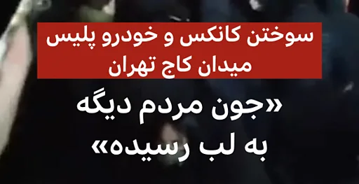 توضیح ویدئو، ببینید: سوختن کانکس و خودرو پلیس میدان کاج تهران