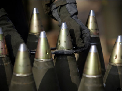 يک سرباز اسرائيلی، همزمان با آماده شدن واحد سيار توپخانه ارتش اسرائيل برای هدف قرار دادن نقاطی در نوار غزه، درحال محکم کردن کلاهک های انفجاری گلوله های توپ 155 ميليمتری است. بحران جاری پس از آن آغاز شد که 9 روز پيش يک سرباز اسرائيلی توسط گروه های مسلح فلسطينی در غزه ربوده شد. سرنوشت اين سرباز هنوز نامشخص است.