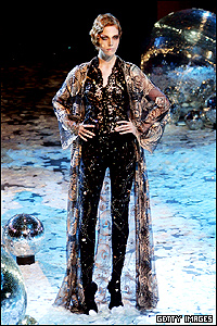 مانکنی در حال نمايش تازه ترين کار طراح لباس، فرانک سوربير، درنمايش پاييزه لباس ۲۰۰۶ در فرانسه.
