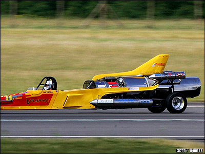 کالين فالوز از شهر نورت همپتون انگلستان در تلاش برای شکستن رکورد سرعت بريتانيا که اکنون ۳۰۰ مايل در ساعت است. |