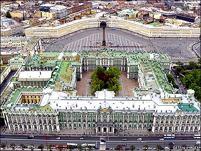نمای کاخ زمستانی سن پترزبورگ. قرار است نشست گروه هشت در حومه سن پترزبورگ - از پانزدهم تا هفدهم ژوئيه - برگزار شود.