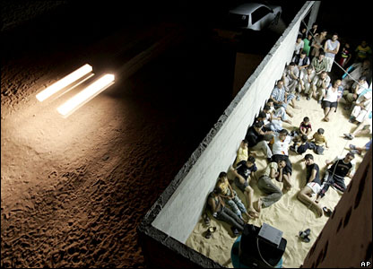 پس از بمب باران تنها کارخانه مولد برق در غزه، توسط نيروهای اسرائيلی، طرفداران فلسطينی، فوتبال را از طريق تلويزيونی که با ژنراتور کار می کند تماشا می کنند.