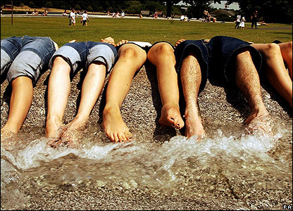 خنک شدن و استراحت توريست های لهستانی، کنار جوی آب در هايد پارک لندن