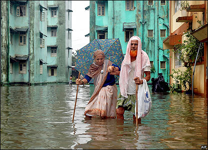 سيل در خيابانهای بمبئی، هند در اثر ريزش باران فراوان