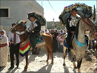 دو برادر سوار بر اسب در يک مراسم سنتی عروسی در نابلس