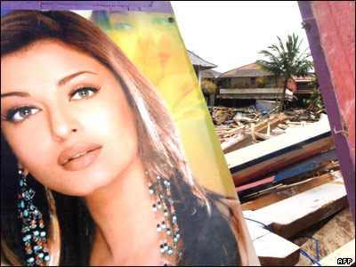 پوستر يک هنرپيشه سينمای هند در جزيره جاوای هند که از زلزله اخير آسيب نديده است. در اثر زمين لرزه و وقوع سونامی در جزيره جاوا در اندونزی دست کم 520 نفر کشته و بيش از يکصد و چهل نفر ناپديد شده اند و به صدها دستگاه خانه آسيب رسيده است.