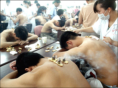 بيمارستانی در جنوب شرق چين در حال مداوای عده زيادی از بيماران با طب گياهی. مردم چين عقيده دارند که در روزهای داغ تابستان بايد امراض زمستانی را مداوا کرد. |