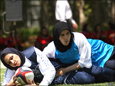 مسابقه راگبی تيم تهران و خراسان در افتتاحيه اولين دوره بازيهای راگبی قهرمانی بانوان ايران.