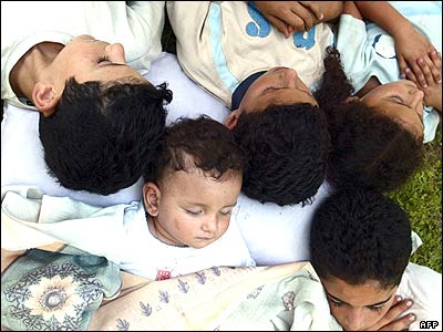 بچه های ساکن جنوب لبنان که مجبور به فرار از بيروت شده اند، در پارک شهرداری شهر بندری سعيده به خواب رفته اند.