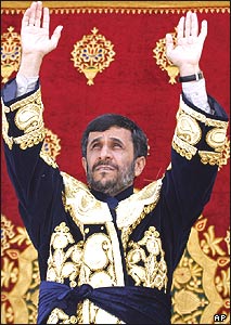 محمود احمدی نژاد در لباس ملی تاجيکی در آخرين روز سفر سه روزه اش به تاجيکستان.
