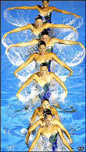 اعضای تيم ورزش رقص در آب از کاستاريکا، در مسابقات سالانه ورزش های آبی امريکای مرکزی که امسال در کلمبيا برگزار شده است.