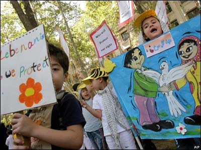کودکان ايرانی در تظاهرات ضد اسرائيلی در مقابل دفتر سازمان ملل متحد در تهران.