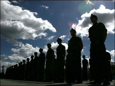 سربازان هنگ سلطنتی انگلين در انگلستان، در يک مراسم نظامی.