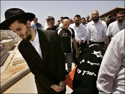 تشييع جنازه مردی که بر اثر اصابت موشکهای حزب الله لبنان به شمال اسرائيل کشته شده است