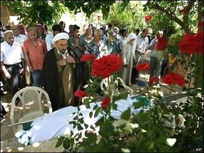 عزاداران در جريان مراسم تدفين يک لبنانی که در اثر اصابت موشک اسرائيلی به خانه اش در روستای بدی واقع در غرب شهر بعلبک کشته شد.