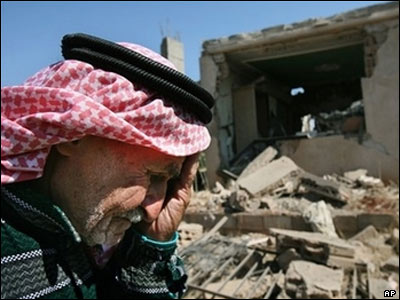 هزاران شيعه عراقی در تظاهراتی عليه حمله اسرائيل به لبنان در شهرک صدر در حومه بغداد شرکت جسته اند
