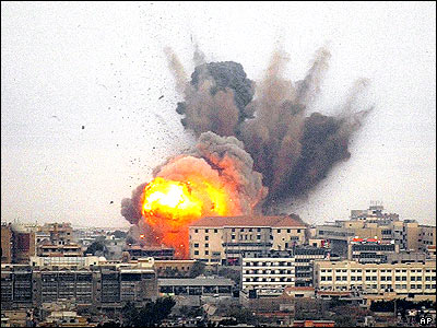 ستون دود و آتش بر فراز ناحيه بمباران شده در حومه بيروت. در جريان تهاجم هوايی تازه اسرائيل به مناطق مسيحی نشين لبنان آسيب های شديدی وارد شده است.