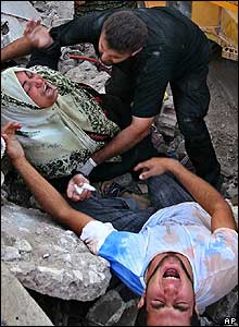خديجه صالح و پسرش، دو لبنانی هستند که خانه بستگانشان در شهری در جنوب لبنان در حملات هوايی اسرائيل ويران شده است. در آخرين حملات اسرائيل 15 تن در مناطق شرقی و جنوبی لبنان کشته شده اند.