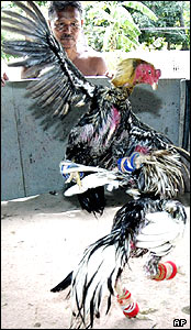 مردی در تايلند درحال تماشای يک خروس جنگی.دولت تايلند 29 استان اين کشور از جمله بانکوک را به عنوان مناطقی که در آن خطر شيوع آنفلونزای مرغی وجود دارد، اعلام کرده است.