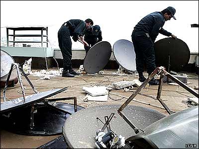 نيروهای انتظامی در ايران دور تازه ای از توقيف و جمع آوری آنتن های ماهواره ای را در تهران آغاز کرده اند. بر اساس قوانين ايران "توليد، ورود، انبار، نصب، فروش و استفاده از گيرنده و تجهيزات ماهواره ممنوع بوده و متخلف مشمول مجازات قانونی خواهد بود."