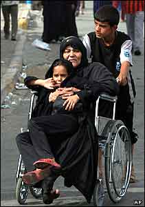 يک خانواده زائر در بغداد در جريان مراسم عزاداری به مناسبت سالگرد رحلت امام موسی کاظم، امام هفتم شيعيان. در اين مراسم دست کم 20 نفر در اثر تيراندازی ها کشته و بيش از 3۰۰ نفر زخمی شدند. به قرار گزارشها گروهی تک تيرانداز در جريان مراسم به حمله غافلگيرانه دست زده و پليس اقدام به تيراندازی متقابل کرده است.