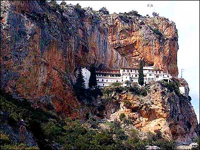 نمايی از يک کليسای ارتدوکس در 300 کيلومتری جنوب غرب آتن، پايتخت يونان. يک مجسمه حضرت مريم که گفته می شود هفتصد سال قدمت داشته از اين کلسيا به سرقت رفته است.