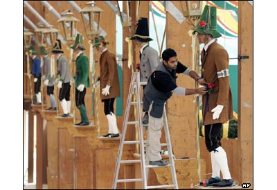 آماده سازی چادر محل برگزاری فستيوال آبجو در مونيخ آلمان. اين فستيوال از 16 سپتامبر آغاز خواهد شد.