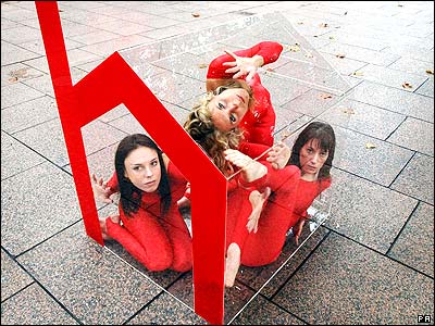 سه زن آکروبات در مرکز لندن با قرار گرفتن در داخل يک محفظه شيشه ای کوچک، به وضيعت ناگوار مسکن در انگلستان اعتراض می کنند. |
