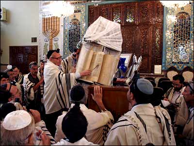 هنگامی که نماز تفيلا به صورت دسته جمعی در کنيسه برگزار می شود، اين نسخه کهن تورات را بيرون آورده، پس از قرائت به جايگاهش باز می گردانند.