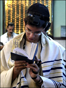 نمازگزار سپس روپوش سفيدرنگی که طليت خوانده می شود به سر می اندازد و تورات در دست گرفته به خواندن دعا مشغول می شود.