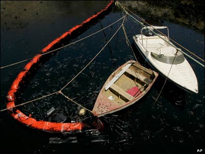 لکه نفتی که در نتيجه بمباران 34 روزه لبنان توسط نيروهای اسرائيل ايجاد شده در نزديکی بيروت ديده می شود.