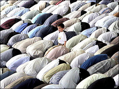 پسر بچه ايرانی در بين نماز گزاران در مراسم نماز جمعه تهران