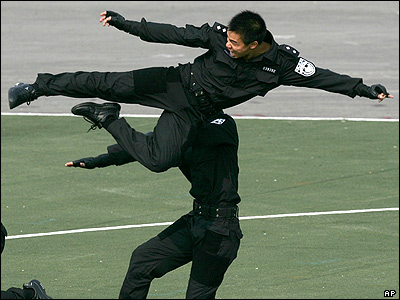 نيروهای ويژه پليس ضد شورش چين در حال اجرای حرکات تمرينی در پکن.