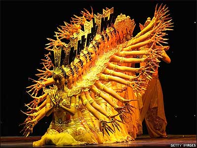 گروهی از هنرمندان معلول چينی در حال اجرای نمايشی با عنوان 'رويای من'. اين گروه هنری که از 60 عضو تشکيل شده، از زمان تاسيس در سال 1987 تا کنون در چهل کشور مختلف جهان برنامه اجرا کرده است.