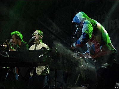 گروه موسيقی الکترونيک Hot Chip يکی از آهنگ های آلبوم "اخطار" را اجرا کرد