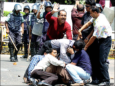پليس ضد شورش بنگلادش برای متفرق کردن تظاهرکنندگان طرفدار عوامی ليگ، حزب عمده مخالف دولت، به باتون و گاز اشک آور متوسل شد. اين تظاهر کنندگان خواستار اصلاح سيستم انتخاباتی بنگلادش بودند.